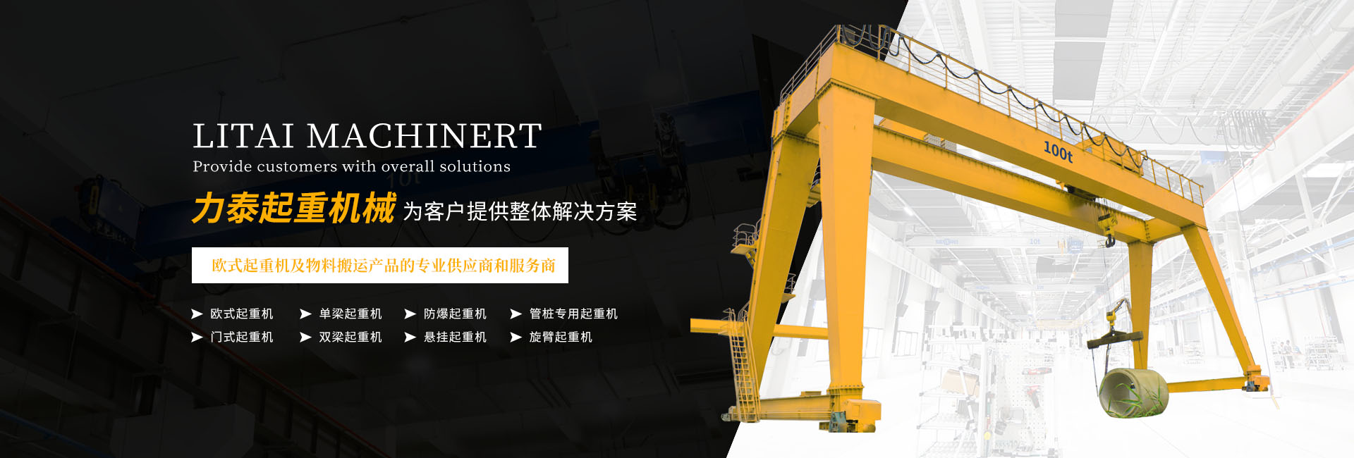 紹興力泰起重機(jī)械有限公司成立于2012年,是歐式起重機(jī)及物料搬運(yùn)產(chǎn)品的專業(yè)供應(yīng)商和服務(wù)商,集起重機(jī)研發(fā)、制造、銷售、安裝、服務(wù)于一體,致力于滿足客戶需求,為客戶提供整體解決方案及售前、售中、售后一站式交鑰匙工程 。